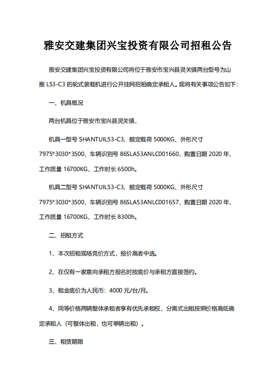 w66利来国际集团兴宝投资有限公司招租公告