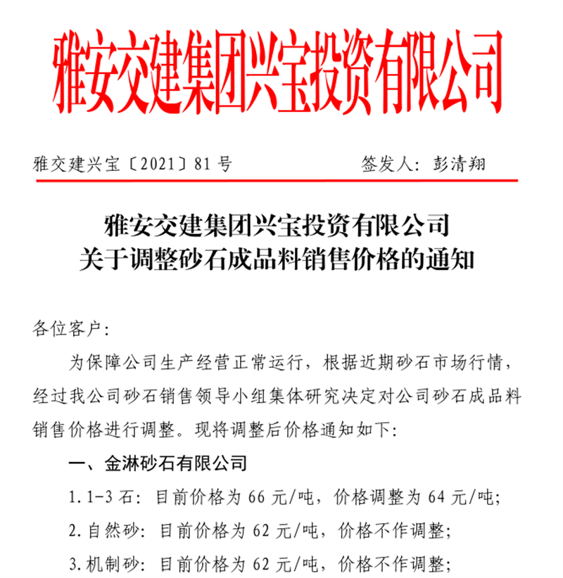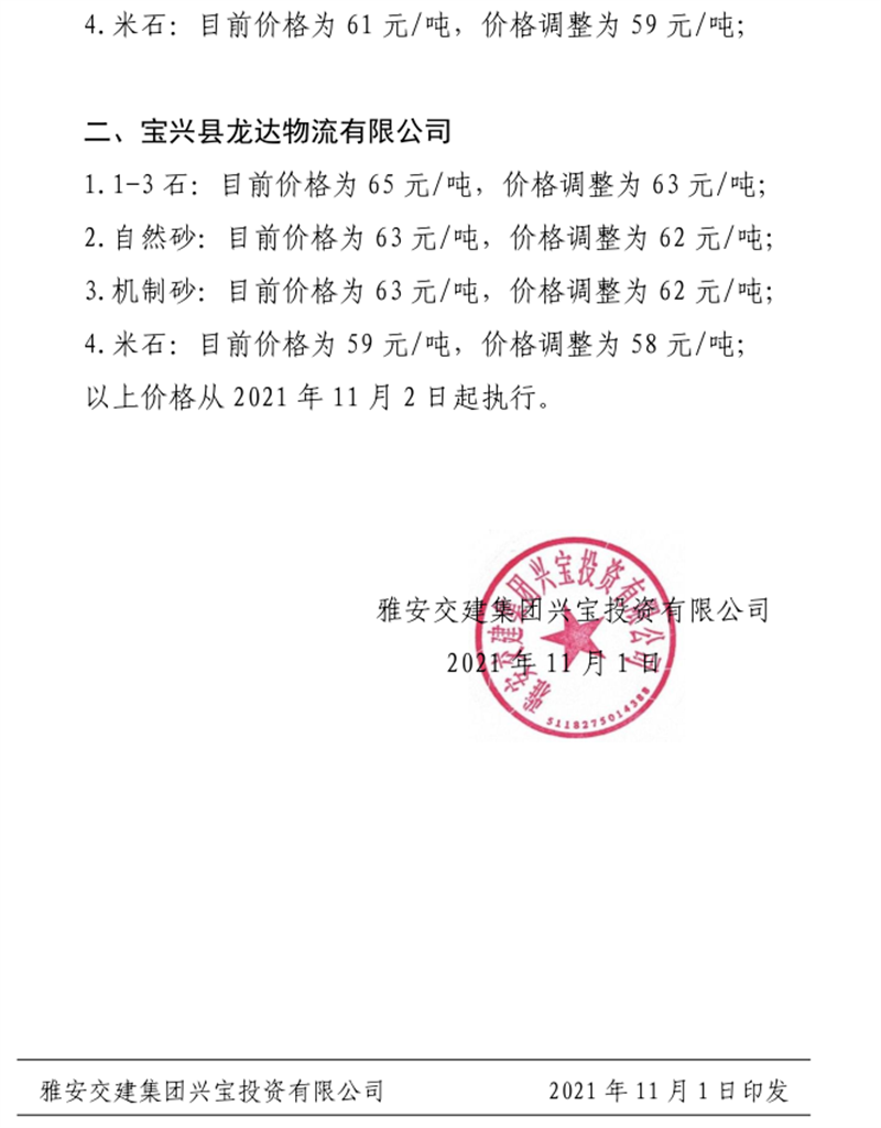 w66利来国际集团云石公司关于调整成品料销售价格的通知(2021.11.4)