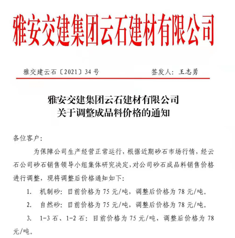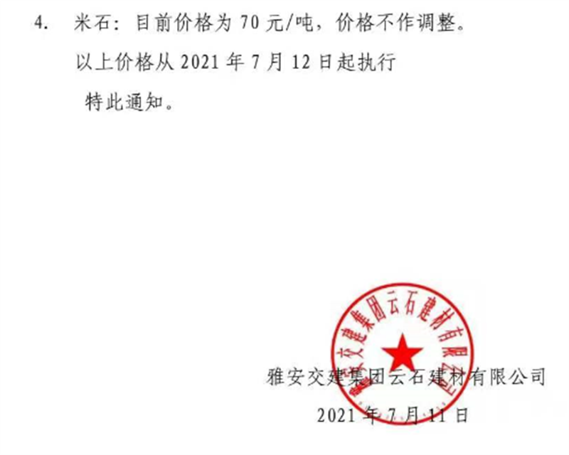 w66利来国际集团云石公司砂石骨料销售价格情况表(2021.7.12)