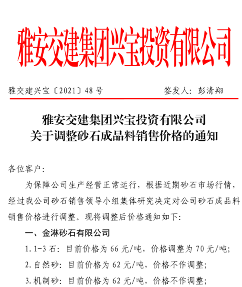 w66利来国际集团兴宝公司砂石骨料销售价格情况表(2021.8.12)