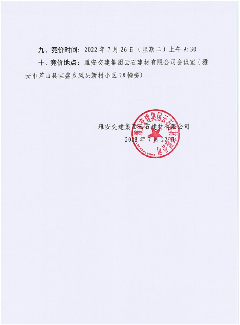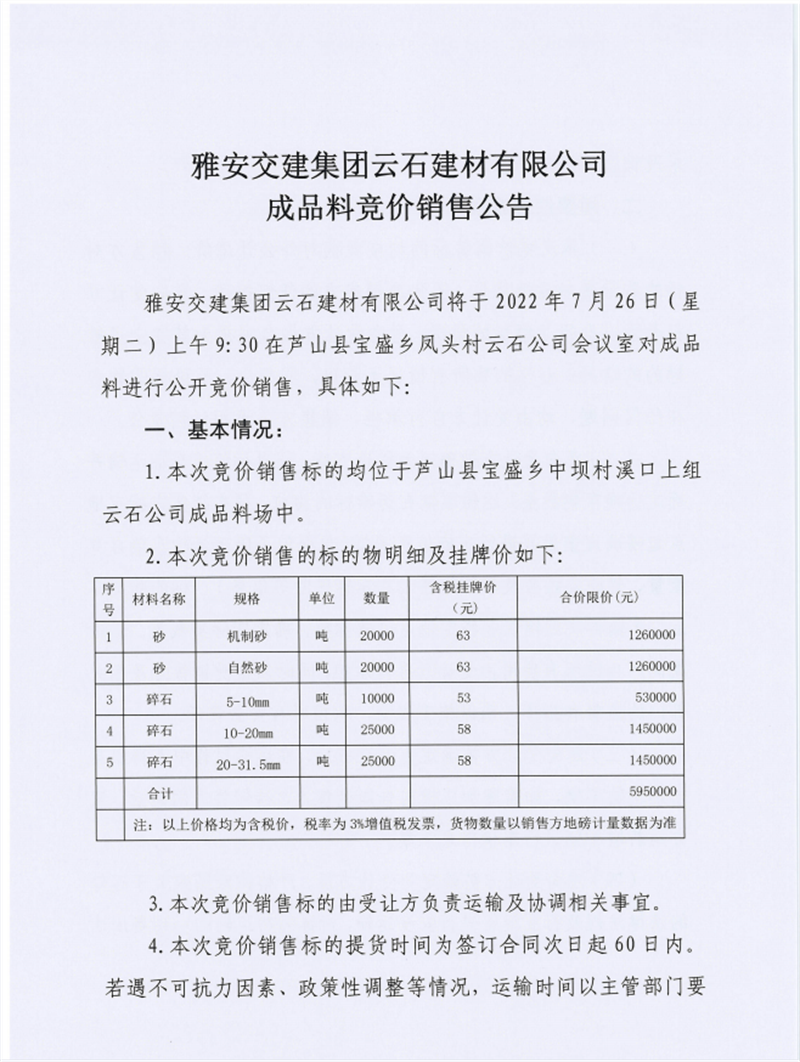 w66利来国际集团云石建材有限公司成品料竞价销售公告