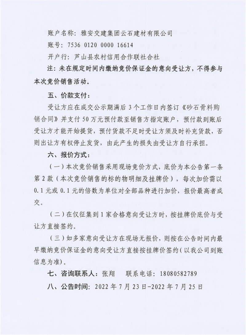w66利来国际集团兴宝投资有限公司宝兴县灵关镇代碑寺土地整理项目100万吨可利用弃渣竞价销售公告(2022.7.25)